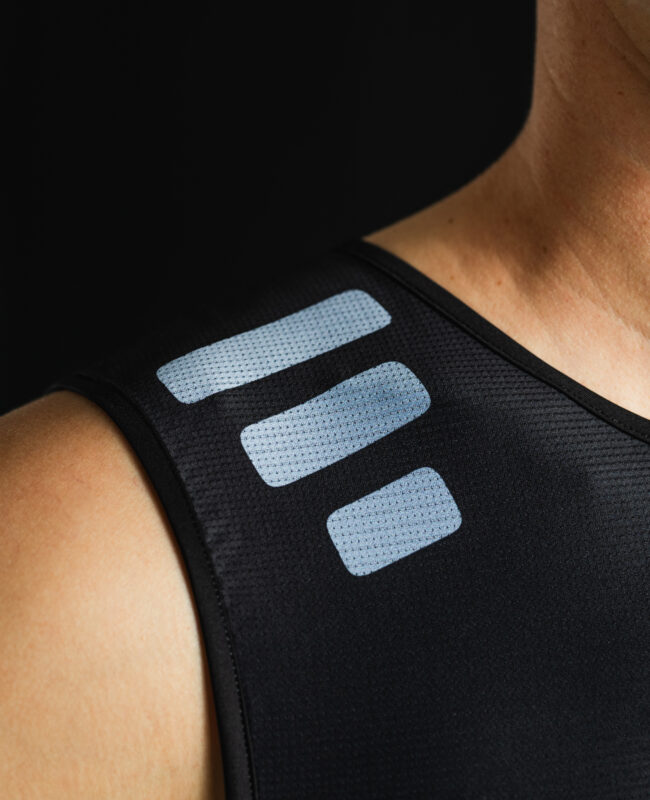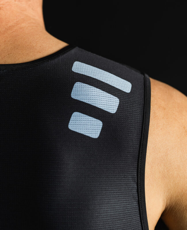 Il fit ultra aderente garantisce una perfetta vestibilità sotto il completo da gara, senza costrizioni o sfregamenti. L’assenza di maniche assicura maggiore libertà di movimento e ventilazione, rendendola la scelta ideale per chi cerca comfort e prestazioni nei giorni più caldi.