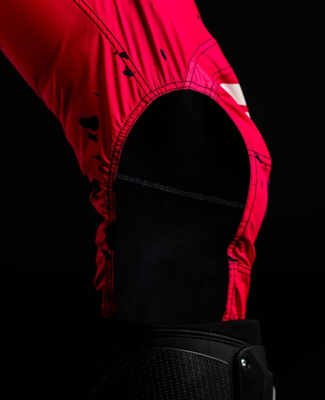 L’interno ginocchio, realizzato in misto kevlar elasticizzato ad alta resistenza, offre durabilità superiore contro l’usura da sfregamento, garantendo prestazioni ottimali nelle discipline motociclistiche più estreme.