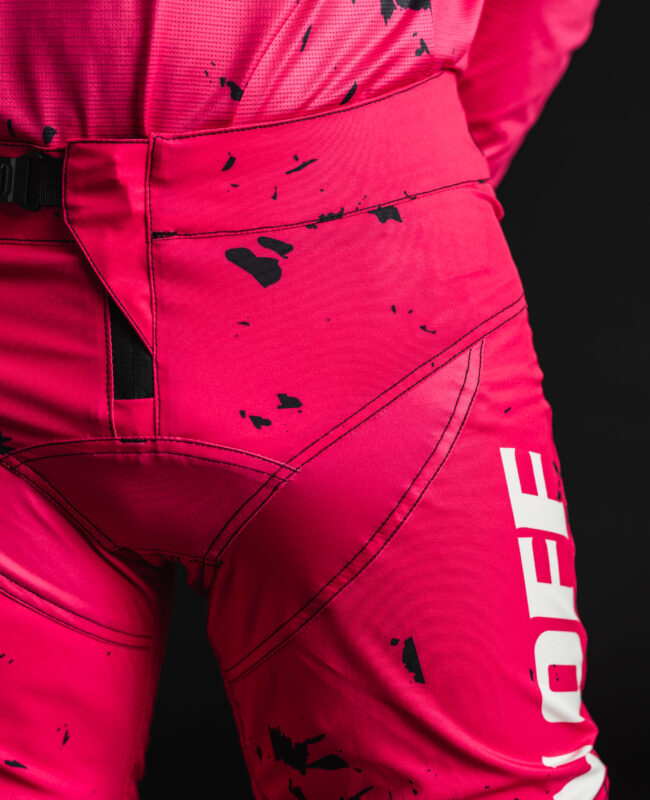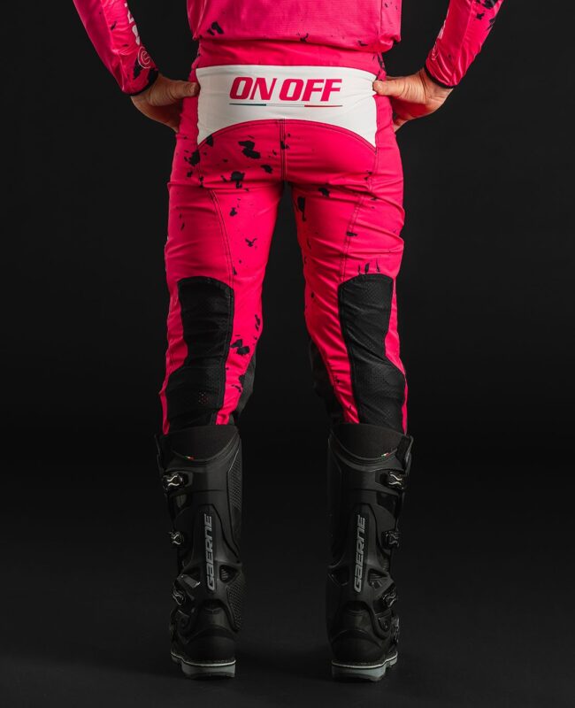 Questi pantaloni si distinguono per il caratteristico hot pink – un colore audace pensato per farsi notare, dentro e fuori dalla pista.